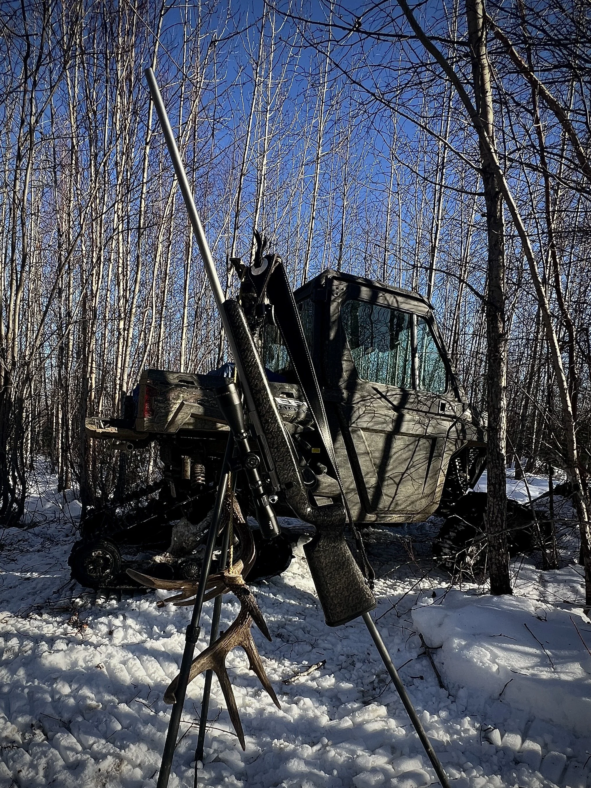 I knew that I would have to be sitting still, and set up, well before I started any form of rattling sequence. I had checked out and planned several viewing and shooting corridors. I parked my side by side well in to the bush and got out my shooting sticks. I intentionally set up with the wind in my face and the sun at my back. I was overlooking a small ravine and wildlife corridor that historically has shown intense deer sign. I was 100% alone with no one for many kms… this was cool ! I cut my firing lines so as be clear from all obstructions and finally remained quiet. Before I begin any form of rattling sequence I always put an obstacle at my back. Animals coming in for a mock fight can be aggressive at close quarters. Having that protective barrier is highly recommended. I prepped my tripod, checked my shot options and began my first rattling sequence. I am not a professional, but I have done this a few times so I am getting excited. After roughly 30 minutes there he was. Walking thought the timber towards the main trail. I got up, placed my firearm in to the tripod, then my tea cup fell over and he spooked. He bolted back in the timber. I immediately bleated a buck grunt, grabbed the horns and began another rattling sequence. I was going to give him something to focus that noise to. In roughly 10 minutes he came back. To the exact trail that I had just cut open. I was in the tripod already. He came walking straight back to me. The safety was off. I stopped him at 75m with a short bleat. With just a mere 2.5 lbs. of trigger pull, he went straight down. Absolutely no tracking. I placed a .300 WM 180gr partition bullet straight in to his heart. There was no pain, just 100% clean. The time and effort that I put forth practicing had paid off in more ways than I could ever explain. I was fighting daylight so my pictures of me loading my deer are limited. I will state that having a Portable Electric Winch to hoist a deer up as you back up your side by side is pretty amazing. When I got back to my house, I am already prepped to receive wild game. I backed in my my side and by side and with ceiling winches I hung the deer up. I then took off the hide and removed the tenderloins. My favorite first meal is BBQ tenderloin kabobs. In a couple days I will process the remainder of the deer in to roasts, jerky, burger and sausage meat. Here is a very brief version of how you can get your whitetail hunting adventure started.