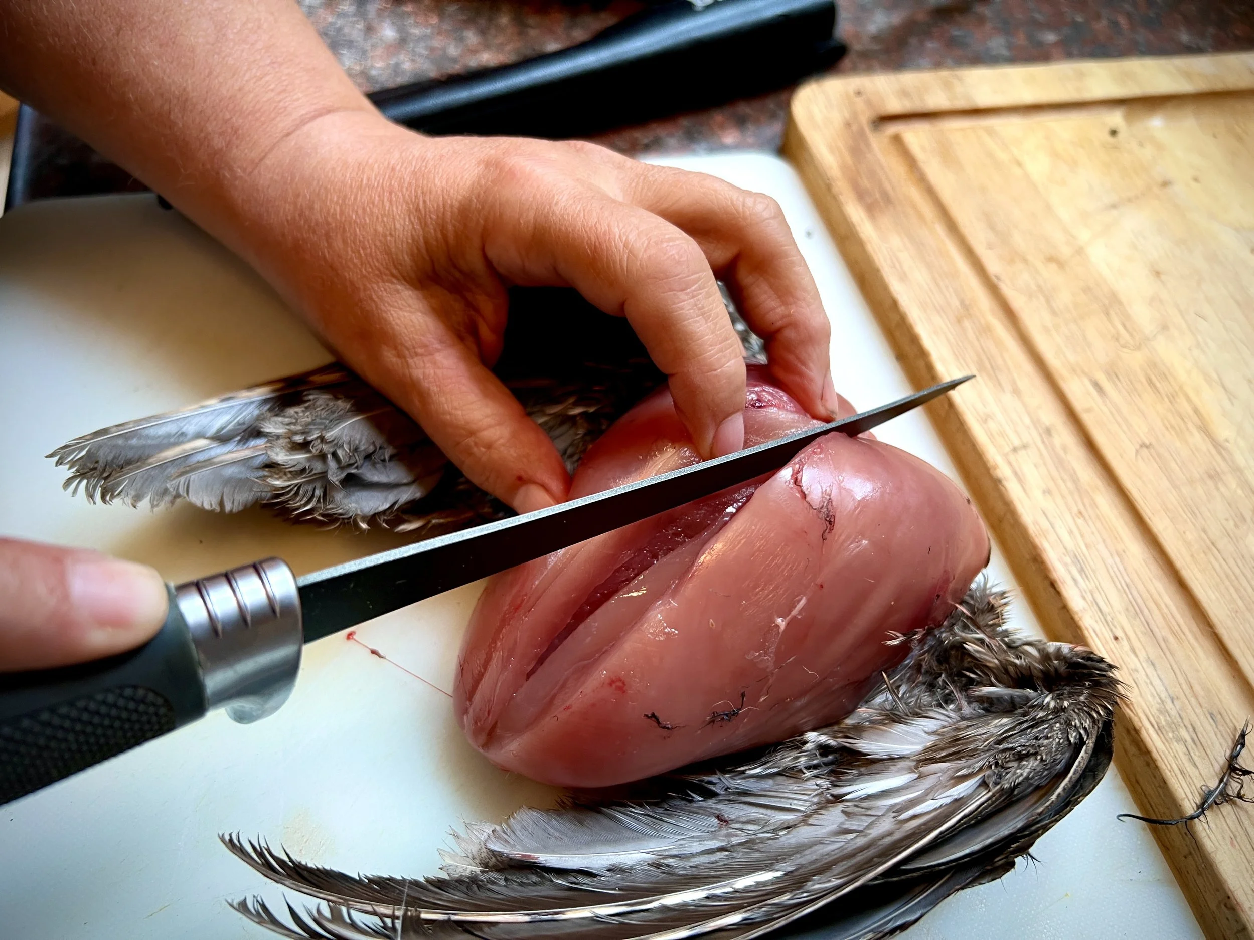 Using a Filleting knife, I debone the Ruffed Grouse meat to be cooked in wide variety of different recipes.
