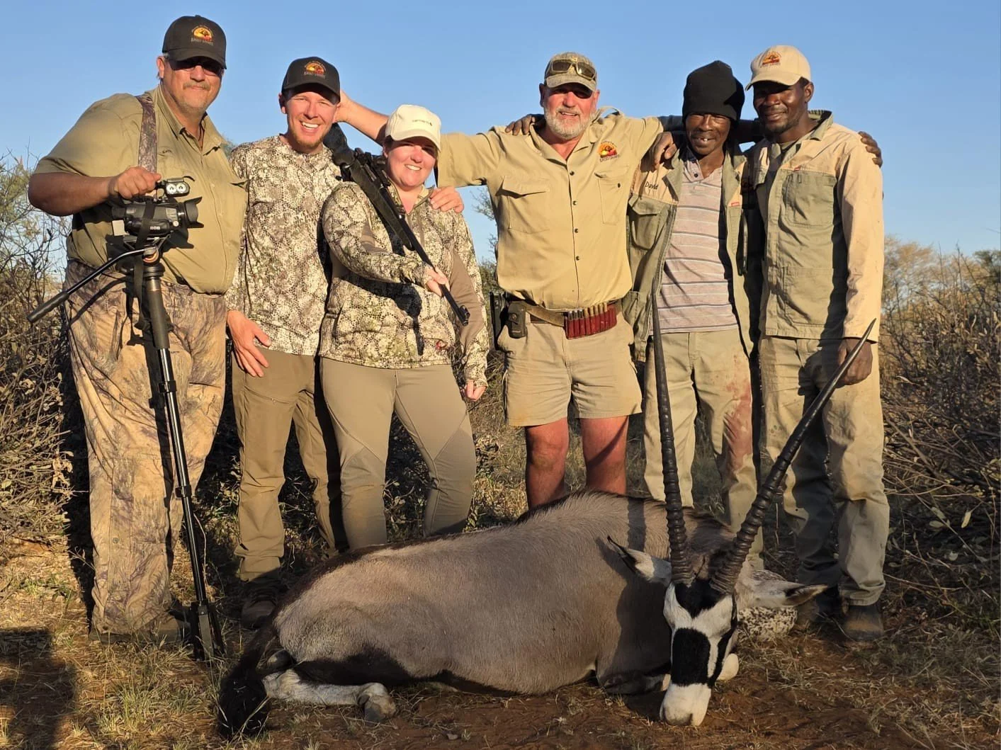 We tracked through thick bush for hours under the hot sun. We paused to refuel, and after a long, grueling effort, they located the wounded gemsbok. We were able to make a final, clean shot.