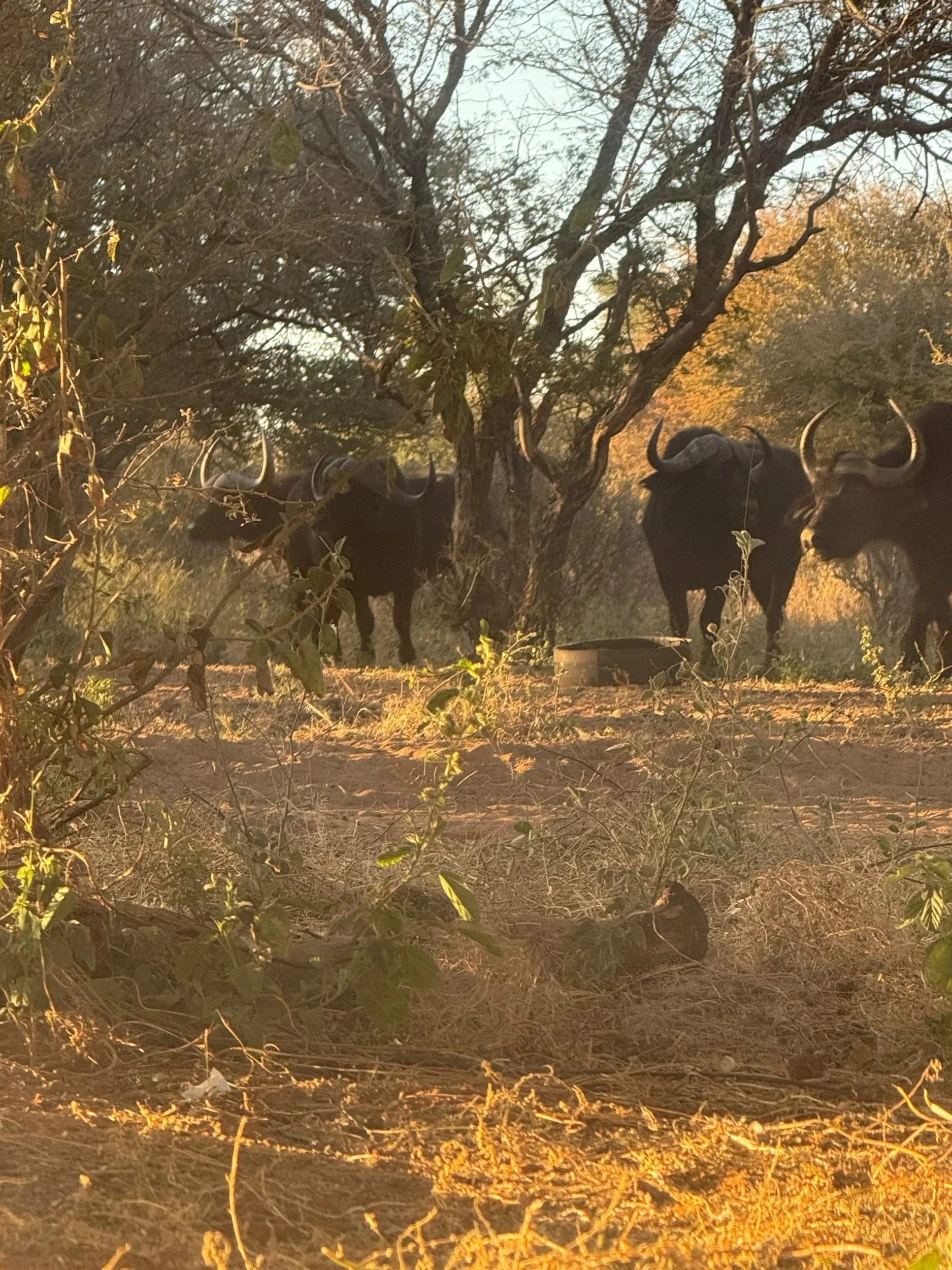 That afternoon, we sat in a ground blind, hoping my husband would have a chance to harvest a golden wildebeest with his bow. We had incredibly close encounters with an ancient Cape buffalo bull and a small herd of striking blue wildebeest. No arrows were released, but the experience left us buzzing with anticipation.