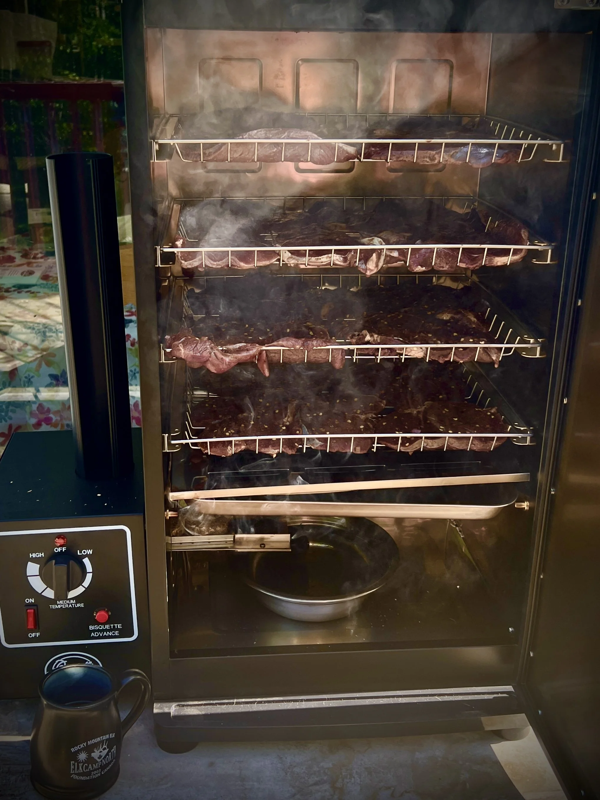 Although I have been deboning my own game now for several years, I have left the sausage making, and hamburger grinding, to the Professionals for professional processing. My reality is that I have a lot to learn about the professional standards of meat preparation. Kevin McNeil said it best when he said “ Presentation is everything !”. A lot of this jerky making, making sausages, or smoking fish, is truly my first time. I am glad to be showing you the learning curve along the way. Lately, I have been watching some of my friends like Brad Fenson “Harvest Your Own” create some outstanding wild game meals. It is truly inspirational. He makes it look so easy. The fact that Brad Fenson has referenced several key “High Calibre” blends of spices, packages and equipment on his “Harvest Your Own” website, and podcasts, makes it a platform I can trust and grow from. I am now able to start picking up some of the equipment, and ingredients, to get me started. Along with some key pointers that I got from Kevin McNeil from Canadian Wildlife Adventures, I will share with you my first attempt of “Elk Jerky” and “Smoked Fish”.