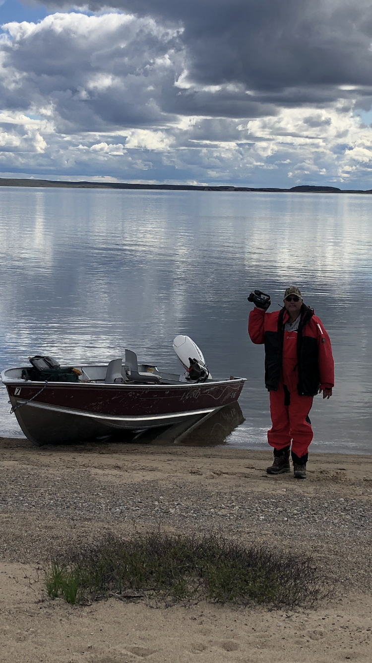 Keith Denoncourt is standing in a place where no one has stood before. Kevin McNeil is taking the picture from the shore of an unnamed, unidentified esker roughly 150 km south of the Arctic circle. The water is crystal clean and only open for roughly 3.5 months a year. It sets a standard of cleanliness and clarity that can not be found anywhere else on Earth.