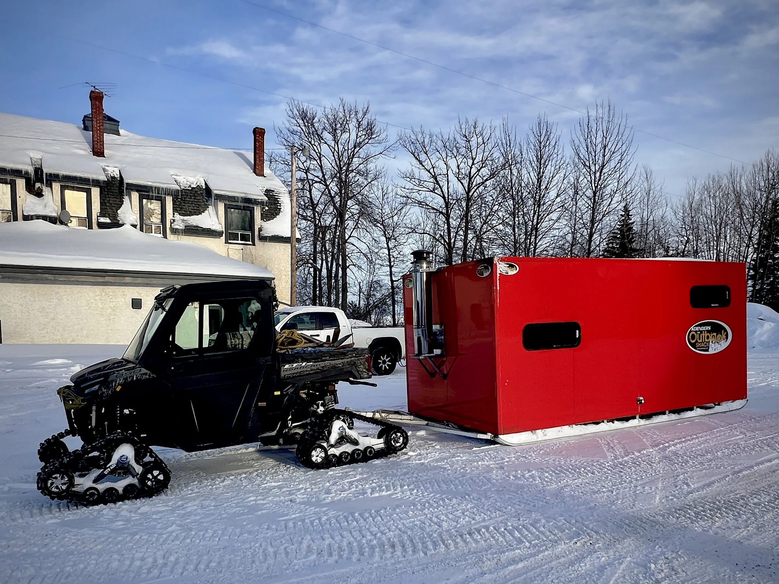 Once the ice shack is free from the ice, I used a solid hitch connection on my tracked side by side to move it to a safer location.