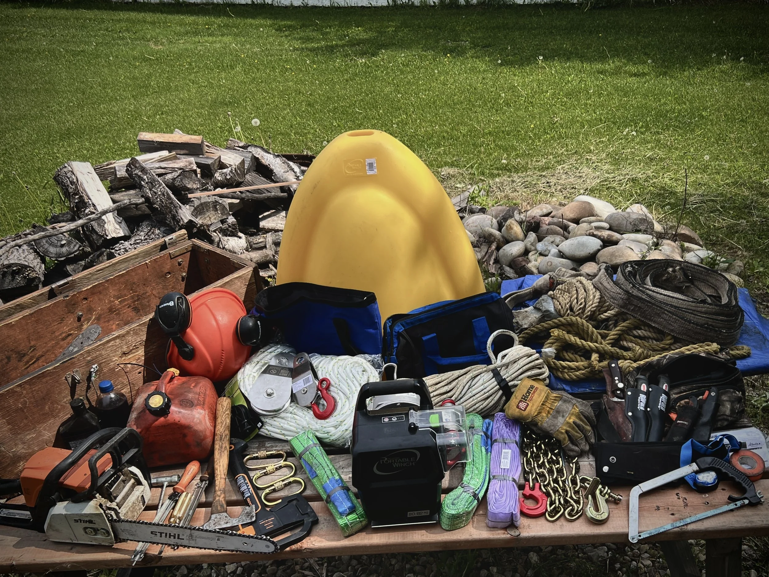 This is my personal rescue and recovery kit. It is pre-packed with everything from Rescue ropes, Chain saws to the Portable Electric Winch. In this case, I needed my back up Team to assist. The right tools, with the right equipment, can make rescue and recovery just a memorable adventure.