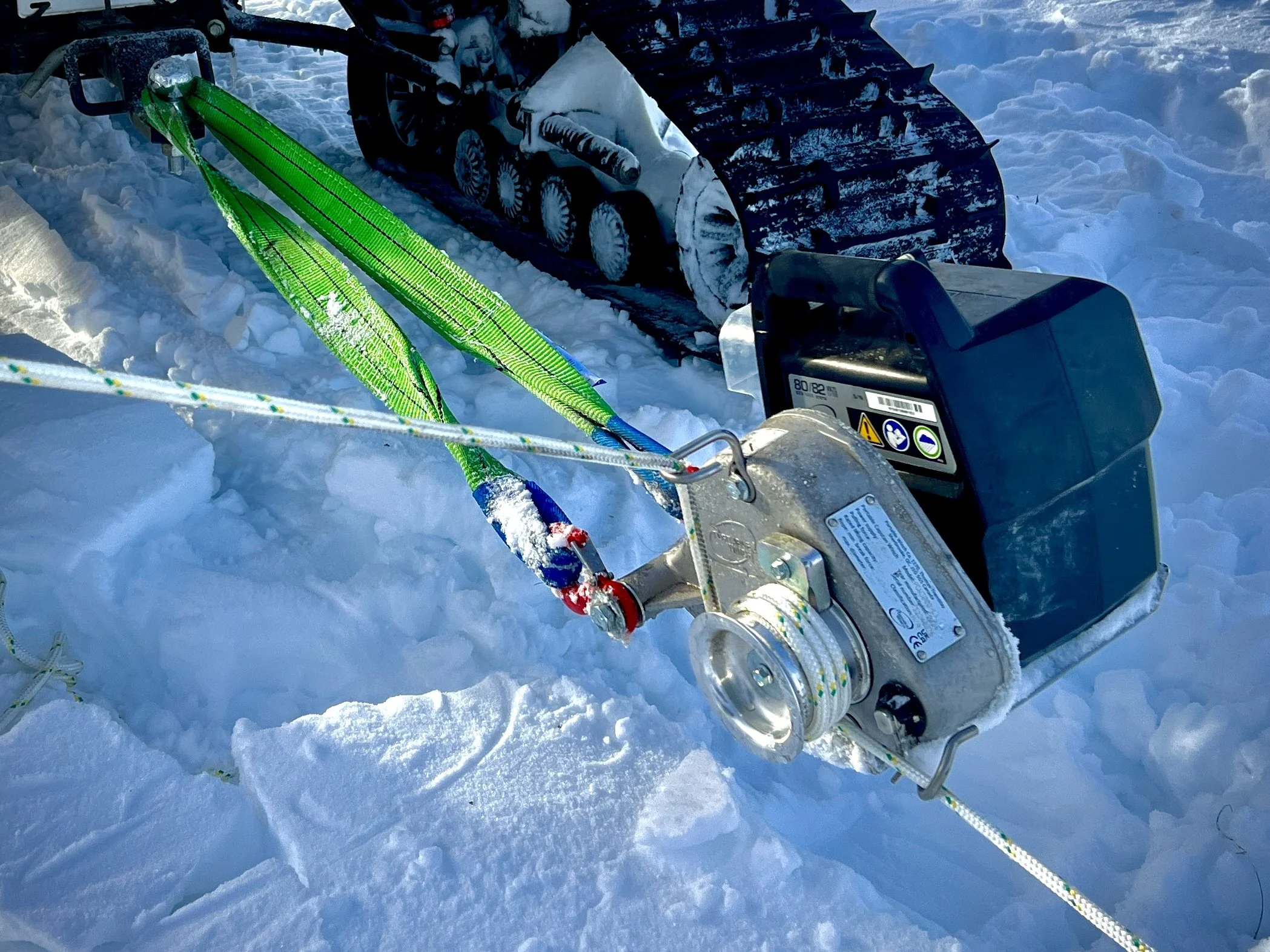 We are doing a preventative move with an Ice Fishing Shack. There is flood water on top so I am facing the shore with my Tracked ATV. I am initially using my Portable Electric Winch to move the shack free of the flood water. I am initially keeping a very long distance away from the shack while I am on the ice with an ATV. When we are clear of the flood water I maintain the safe distance by then connecting to a long tow rope. Only when I am on shore will I shorten the distance and go to a solid hitch. Using the right tool for the right job makes all of the difference in a safe and successful move.